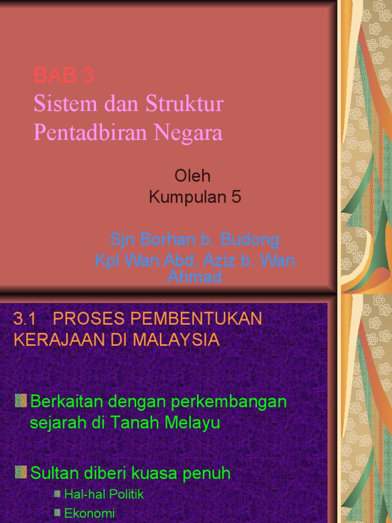 Setiap negara akan berada dalam keadaan stabil dan aman jika sistem pemerintahan dijalankan secara betul, mengikut susunan dan menyeluruh. Sistem dan struktur pentadbiran negara. C) rakyat berpeluang membentuk kerajaan. Bab ini akan merangkumi proses pembentukan sistem dan struktur pentadbiran negara yang menjadi tunjang kepada pemerintahan negara. Sistem dan struktur pentadbiran negara proses pembentukan kerajaan fungsi utama kerajaan komponen utama proses pembentukan kerajaan di malaysia zaman pemerintahan.
