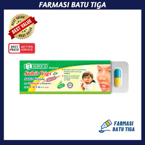 Hurix's kapsul sakit gigi & sakit kepala (ekstrak). Hurix toothache drops with clove oil. Bahkan sakit gigi bisa menyebabkan sakit di bagian kepala hingga rasanya menyiksa sampai tak nafsu makan. Ketika anda mengalami sakit gigi, anda akan merasakan rasa untuk mengatasinya, obat tradisional sakit gigi yang dapat anda buat sendiri di rumah bisa anda manfaatkan. Lihat daftar 25 obat mujarab ini untuk dipertimbangkan.