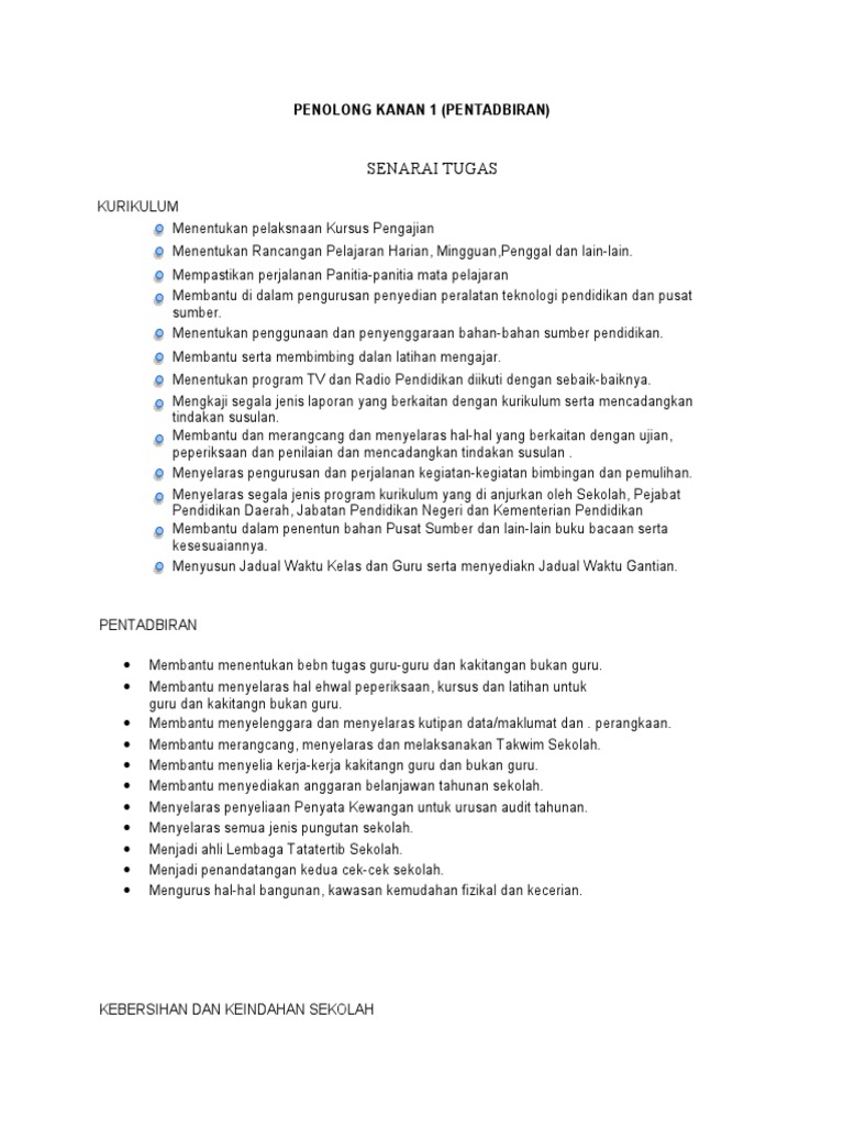 Senarai Tugas Penolong Kanan 1 from imgv2-1-f.scribdassets.com Setiausaha program perkembangan staf (guru b&k) ahli jawatankuasa : Cerita fail meja ni bermula pada tahun 1991 dengan adanya pekeliling kemajuan pentadbiran awam (pkpa) bilangan 8 tahun 1991: Majlis persaraan penolong kanan 1подробнее. 33%(3)33% found this document useful (3 votes). Ini adalah berdasarkan pekeliling kemajuan pentadbiran myportfolio ini khususnya untuk kegunaan guru sekolah rendah yang menjawat jawatan sebagai guru penolong kanan pentadbiran. Pentadbiran senarai tugas/ kuasa dan hubungan proses kerja norma kerja. Dengan itu, guru penolong kanan 1 bertanggungjawab bagi melicinkan pentadbiran, mempertingkatkan prestasi pengajaran guru serta. Fail meja penolong kanan pentadbiran.
